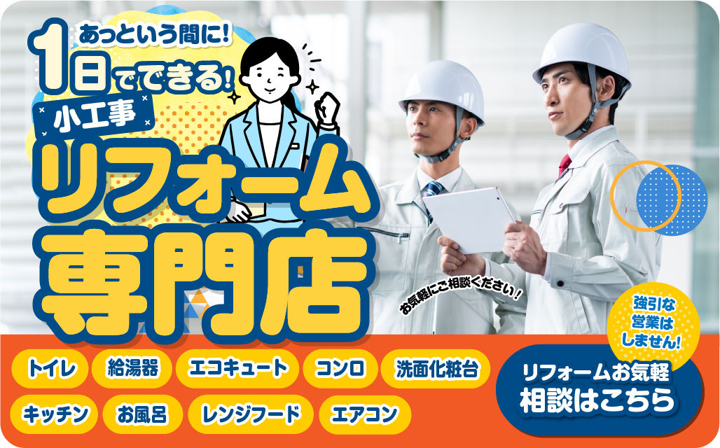 地域密着の専門店が施工する小工事リフォームは1日であっという間に完了!気軽にお値打ちにリフォームしてみませんか。