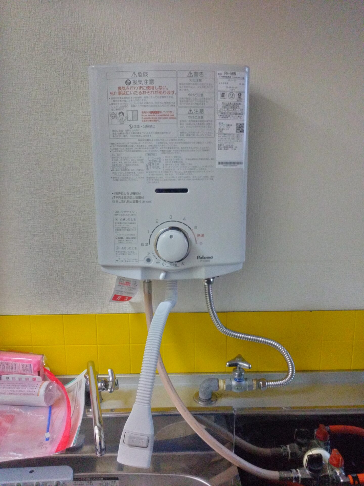 前橋市のアパート入居対応時に小型湯沸器の内部に漏水が見られました。使用年数が20年以上だったこともあり経年劣化による故障と見られるため、同等品のパロマの小型湯沸器を提案し受注となりました。