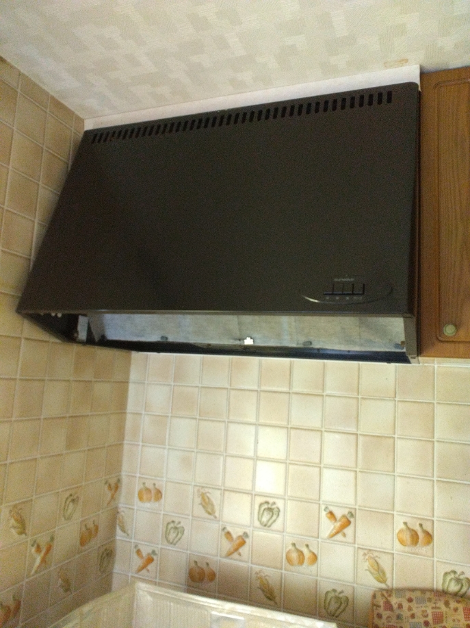 高崎市のお客様よりブーツ型のレンジフードから掃除のしやすいシロッコファンタイプのレンジフードに交換したいと相談があり、パロマのレンジフードを提案し受注となりました。