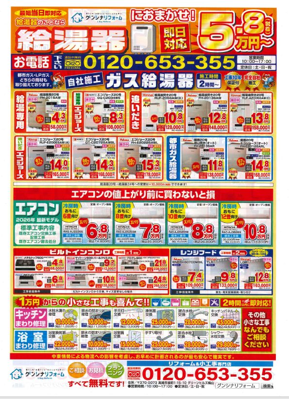 給湯器交換&リフォーム大特価!!